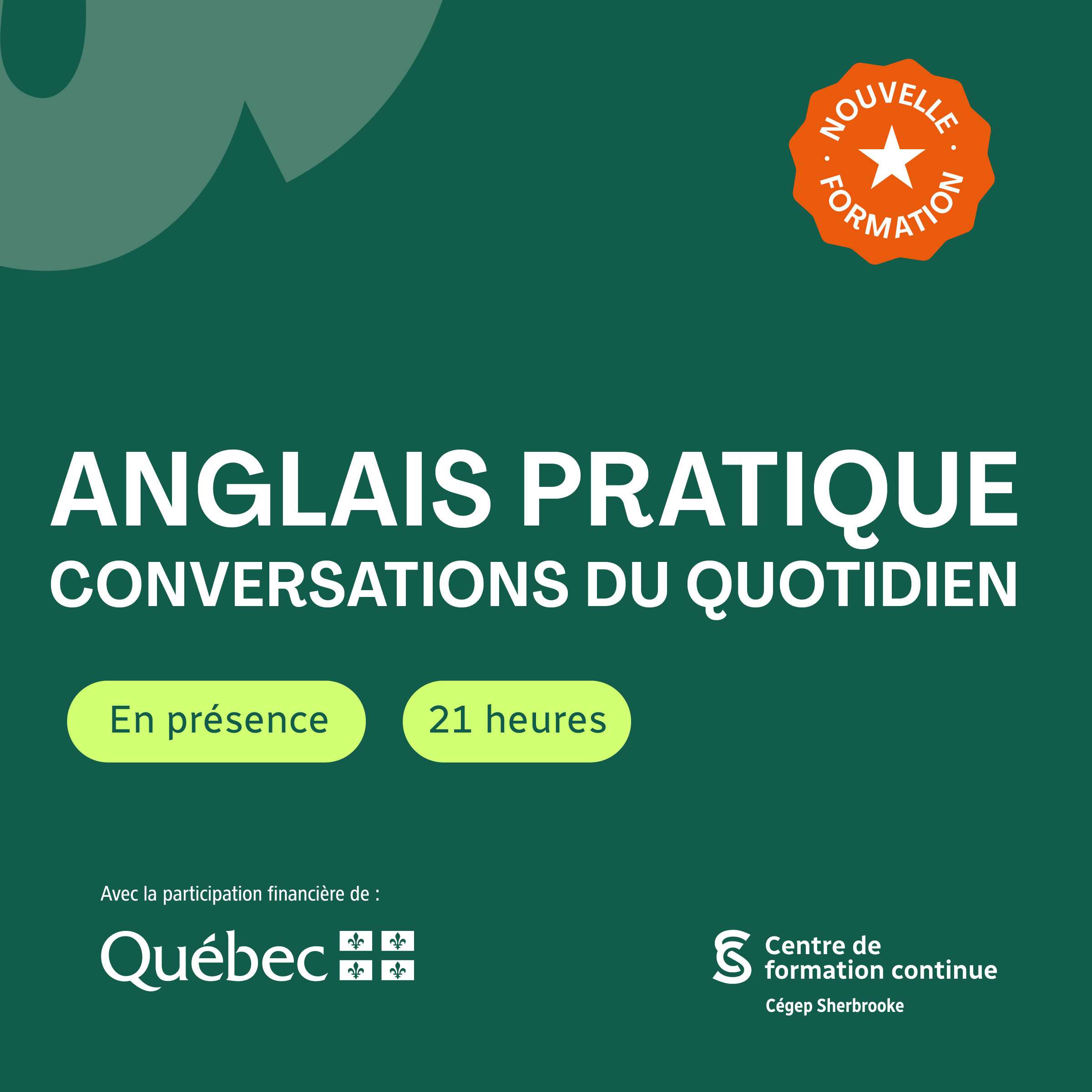 Axés principalement sur la conversation et le développement des compétences linguistiques, les ateliers d’anglais invitent l’apprenant à se familiariser avec les temps de verbes simples et le vocabulaire courant afin d’échanger sur des sujets communs et de décrire des situations quotidiennes.