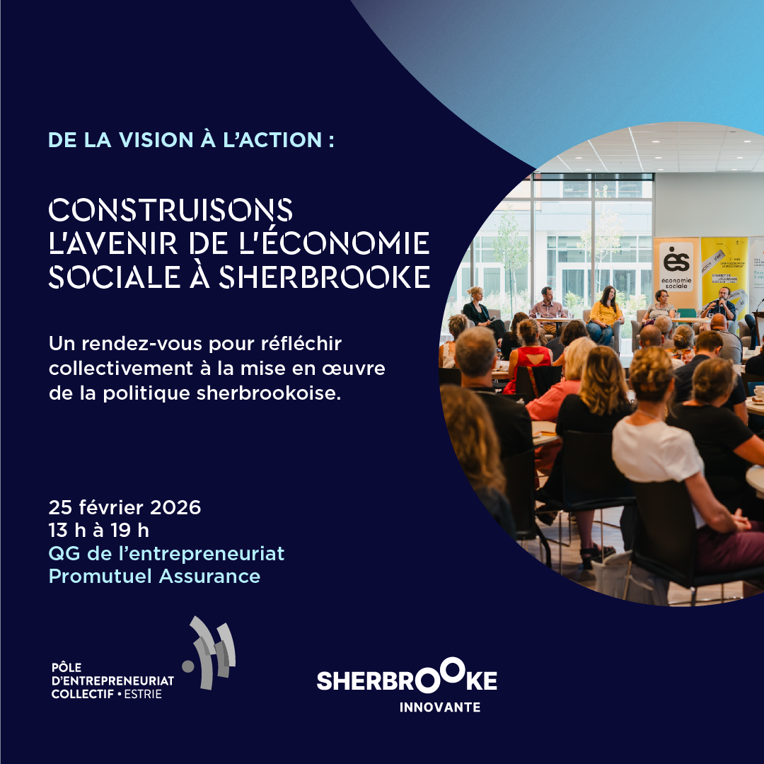 Cet événement, organisé par Sherbrooke Innovante, en collaboration avec le Pôle d’entrepreneuriat collectif de l’Estrie, s’adresse aux entreprises d’économie sociale, partenaires, acteurs et actrices du milieu qui souhaitent réfléchir collectivement à la suite des choses et contribuer à la mise en œuvre de la politique.