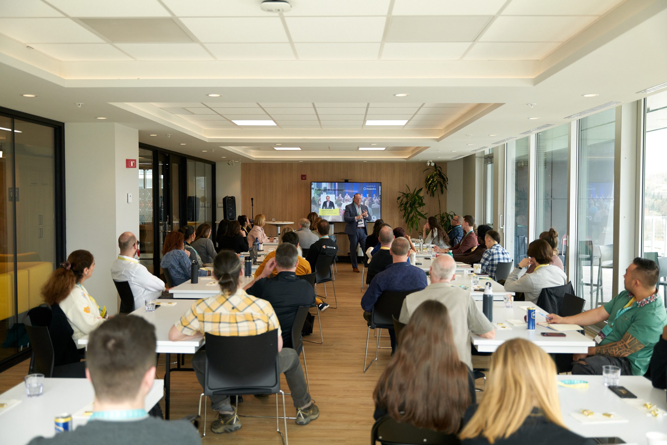 Le lendemain, les participant.es avaient rendez-vous pour une journée de conférences, ateliers et panels sur des thématiques fort variées : développement durable, intelligence artificielle, santé mentale, neurodiversité en emploi, entrepreneuriat, et plus!