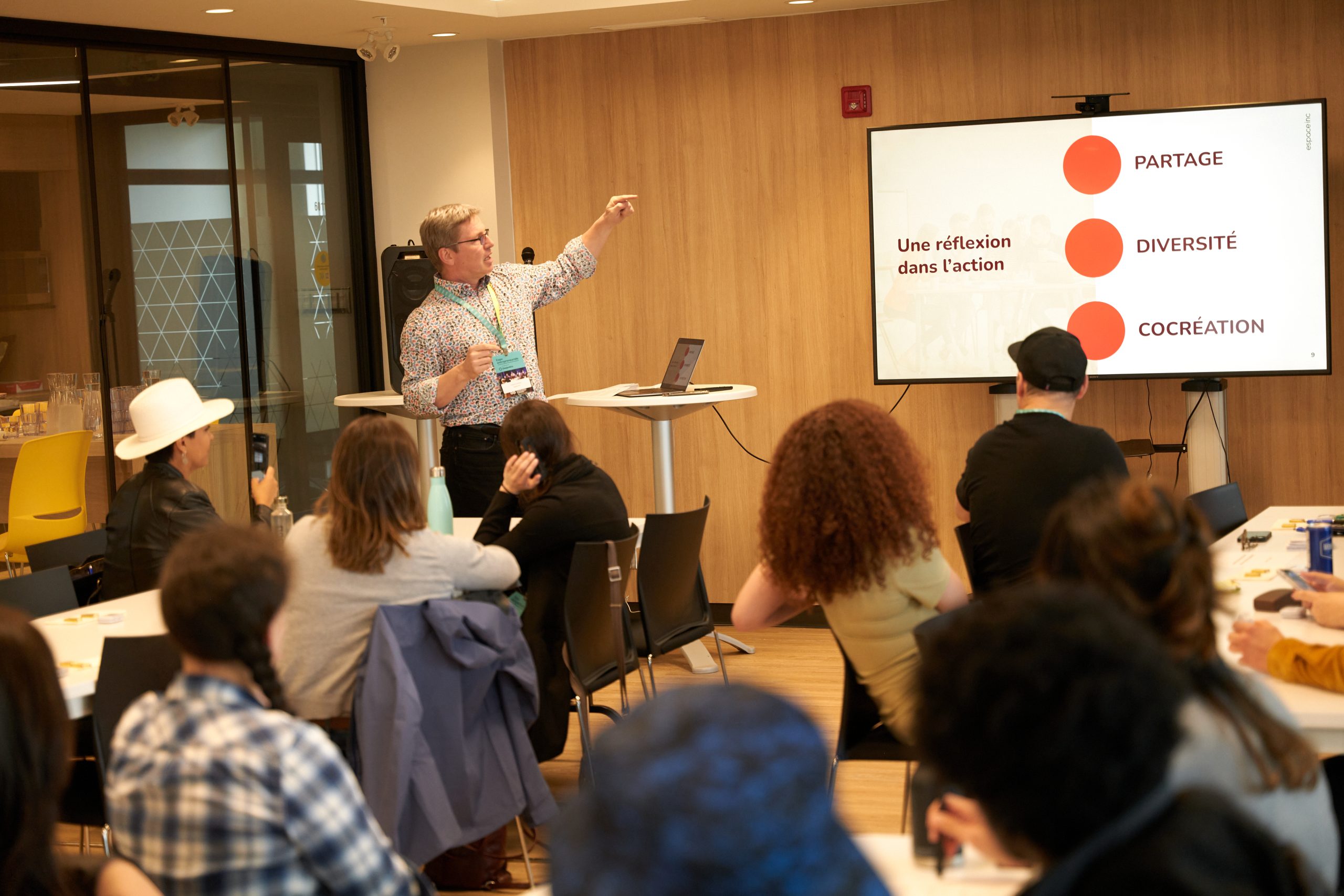 L’art de la conférence – Le comédien, humoriste et directeur artistique Sylvain Bergeron a été généreux de ses conseils pour s’exprimer en toute confiance et captiver son audience. On a notamment retenu de se pratiquer à haute voix et devant « public » (toutous, voire micro-onde!).